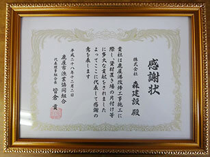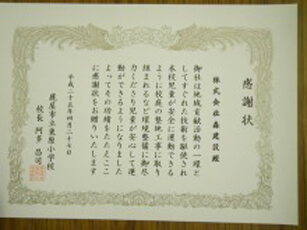 Osumi Regional Development Bureau recognized these activities and certified us as Hometown Road Supporter (10,000 meters of National Route 504) , Everybody’s Port Supporter (1,500 meters of Shibushi Port Seaside Road), and Hometown Erosion-control Supporter (designated erosion-control area of Kami-ichiki No. 4 brook).