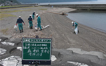 Having good communication with local residents through volunteer activities organized by the community, we participate in these programs to protect environment around our site offices and construction areas. For example, all of the personnel take part in cleaning campaigns such as picking up empty cans and wiping traffic mirrors.