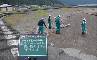 Having good communication with local residents through volunteer activities organized by the community, we participate in these programs to protect environment around our site offices and construction areas. For example, all of the personnel take part in cleaning campaigns such as picking up empty cans and wiping traffic mirrors.